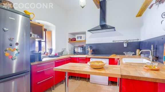 - Une cuisine équipée avec notamment : bouilloire électrique, four, four à micro-ondes, grille-pain, lave-vaisselle, plaques de cuisson...