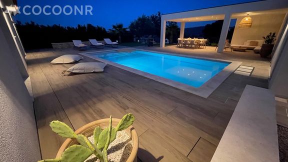 Wir waren zu fünft für 13 Tage in diesem Haus. Das Haus selbst ist neuwertig und wurde nach Auskunft erstmalig in diesem Jahr vermietet. Alles war wie beschrieben, die Übergaben liefen angenehm und unkompliziert. Die Nachbarschaft war ruhig. Hervorheben möchte ich, dass die Kameras außen am Haus alle professionell abgedeckt waren - so hatten wir nicht den Eindruck, überwacht zu werden. Leider war eine Pool-Liege bei Ankunft defekt und es wurde auch kein Ersatz beschafft, das kann besser gelöst werden.