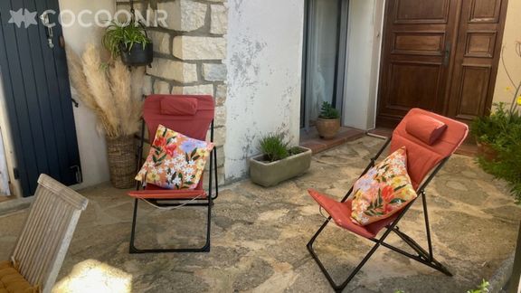 - Le jardin privé de 800 m², entièrement clos, vous offre un espace de détente parfait. Vous y trouverez un salon de jardin ainsi que des chaises longues, idéaux pour profiter du plein air en toute tranquillité.