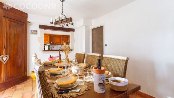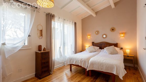 L'agence Cocoonr/Book&Pay vous propose à la location, à Montfrin, cette maison climatisée, d’une superficie de 140 m² et pouvant accueillir jusqu’à 6 voyageurs. Elle est composée d’une pièce à vivre de 50 m², cuisine équipée, de trois chambres, deux salles de bain (avec douche et baignoire) et vous pourrez profiter d’un jardin d’environ 800 m². Wifi (fibre optique), draps et serviettes inclus, nous n’attendons plus que vous !