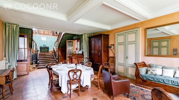 - Une pièce de vie de 50 m² avec canapés, fauteuils, TV et salle à manger