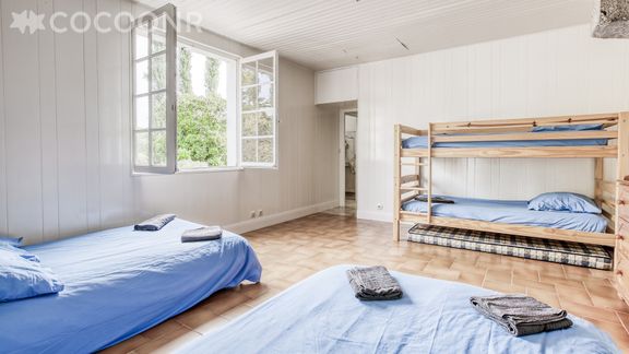 - Chambre 4 : deux banquettes-lits (4 couchages) et un lit superposé (2 couchages)