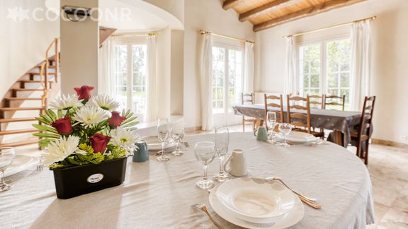 Nous gardons en mémoire les belles soirée autour du feu de cheminée, les grandes tables pour les grandes réunions, l’espace qu’offre la maison lorsqu’on est nombreux est parfait.
