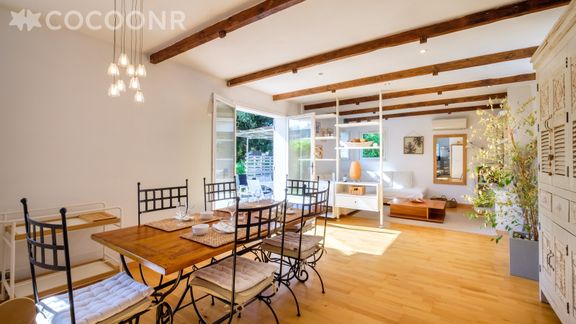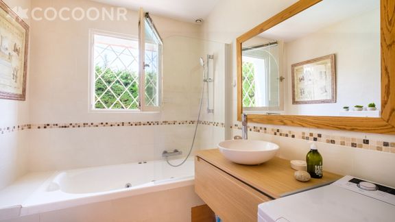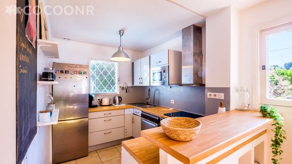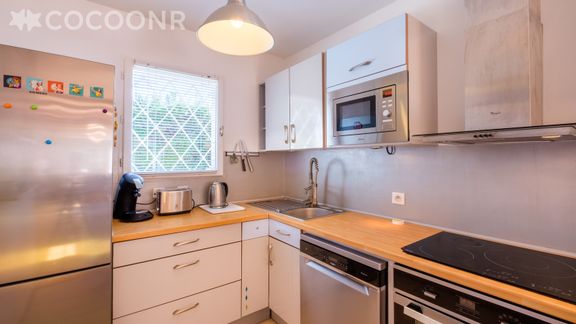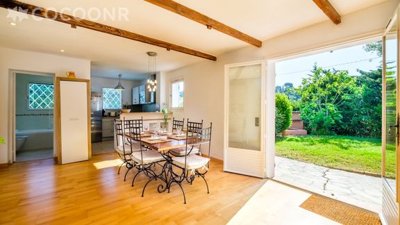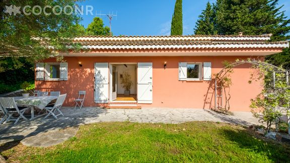L'agence Cocoonr/Book&Pay vous propose à la location, à Mougins, cette charmante maison avec piscine, d’une superficie de 80 m² et pouvant accueillir jusqu’à 4 voyageurs. Elle est composée d’une jolie pièce à vivre de 36 m², d'une cuisine ouverte équipée, de trois belles chambres, d'une salle de bain (avec baignoire) et vous pourrez profiter d’un jardin d’environ 750 m². Les draps et les serviettes sont inclus. Nous n’attendons plus que vous !