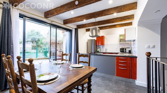 La maison est refaite à neuf, très bien équipée (wifi, clim, ventilo, prises plus qu'il n'en faut), le jardin est sécurisé, tout est accessible aux chiens. Le village est charmant avec une bonne boulangerie à deux pas (pour le reste, il faut prendre la voiture qqs minutes). Des chemins de randonnée permettent de découvrir le vignoble et la garrigue. Il est très simple aussi de rayonner en voiture dans la région, Montpellier et les plages du Grau du Roi à 30 minutes, Nimes à 20 minutes.
