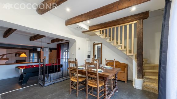 - Une grande salle à manger doté d'une table à manger pouvant accueillir jusqu'à 6 convives.
