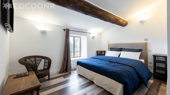 - Chambre 1 : un lit Queen-Size, une TV, des rangements et un fauteuil.