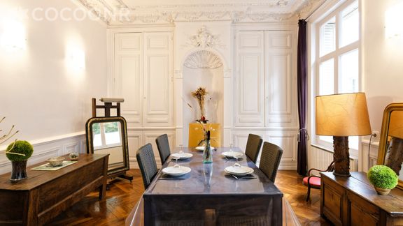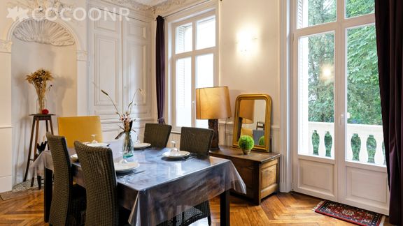 L'agence Cocoonr/Book&Pay vous propose à la location, sur la commune de Nancy, ce charmant appartement type "Ecole de Nancy", avec moulures et haut plafond, d’une superficie de 100 m² et pouvant accueillir confortablement 4 voyageurs. Situé au 1er étage (sans ascenseur), il se compose d’une jolie pièce à vivre, d'une cuisine équipée, de deux belles chambres et d'une salle d'eau. Wifi (fibre optique), draps et serviettes inclus, nous n’attendons plus que vous !