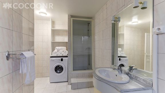 - Une salle d'eau avec douche et lave-linge