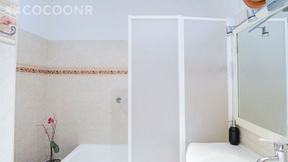 - Une salle de bain avec une baignoire, une vasque, un sèche-cheveux ainsi que du shampoing et/ou gel douche à disposition.