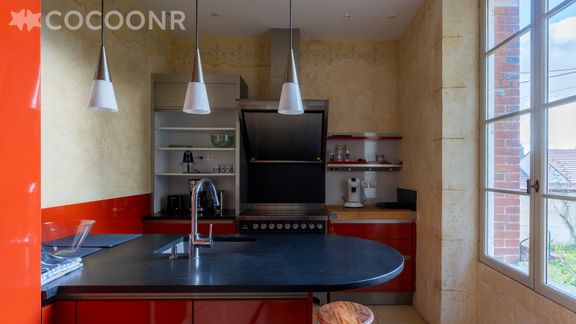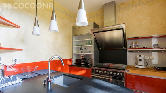 - Une cuisine équipée avec notamment : bouilloire électrique, four, four à micro-ondes, grille-pain, lave-vaisselle, plaques de cuisson...
