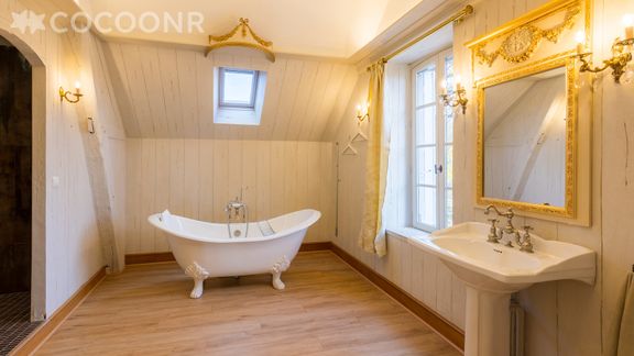 - Chambre 4 : suite parentale avec un lit queen-size (160x200) et sa salle de bain attenante (avec baignoire, douche et WC séparé)
