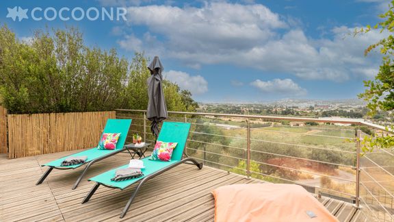 Lovely place, well-equipped, spacious and comfortable. Wonderful view from the deck, and lots of options for lounging. Use Waze (NOT Maps) to find it. From the roundabout you take a steep, winding dirt path (not a road) up the hill to get to the house. You might encounter a car coming from the opposite direction, in which case one of you pulls over or backs up until the other can pass. Rarely happened, and we all managed.