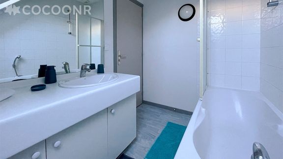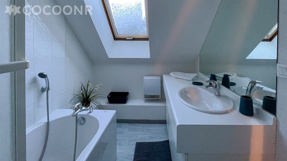 🙁 Une baignoire avec un flexible de douche beaucoup trop court pour se laver debout, le store occultant de la chambre qui ne se bloque pas en mode nuit, 1 seul vigik d'accès au bâtiment pour deux jeux de clés....