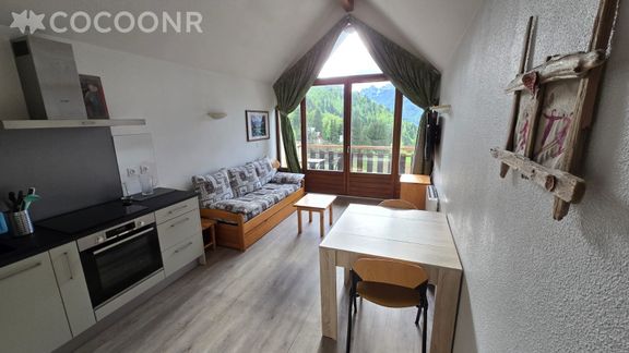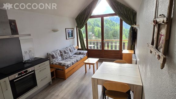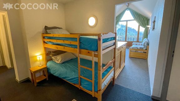 L’appartement peut accueillir confortablement 6 voyageurs et se compose d'une entrée avec lit superposé, d'un salon séjour avec canapé-lit double, d'une chambre avec deux lits simples, d'une salle de bain, ainsi que d'un balcon avec vue sur la montagne ! Serviettes non fournies, draps disponibles en supplément.