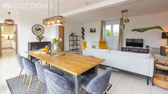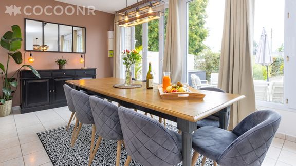 Logement fidèle à la description de l'annonce. Maison mitoyenne suffisamment grande et parfaitement bien équipée pour accueillir 10 personnes. À souligner, tout l'équipement nécessaire pour un bébé. Cuisine très bien équipée. 4 chambres bien agencées avec 8 lits au total. Salle à manger / salon très agréable à plusieurs, tout comme le salon et la table en extérieur. Seul bémol, cet extérieur n'est pas terrible entre absence de pelouse et vue sur la route. En revanche, un petit jardin avec jacuzzi vient compenser de l'autre côté de la maison.