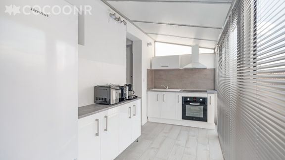 - Grande cuisine donnant sur la loggia entièrement équipée : four, plaques de cuisson, réfrigérateur, bouilloire électrique, cafetière à filtre, vaisselle et couverts...