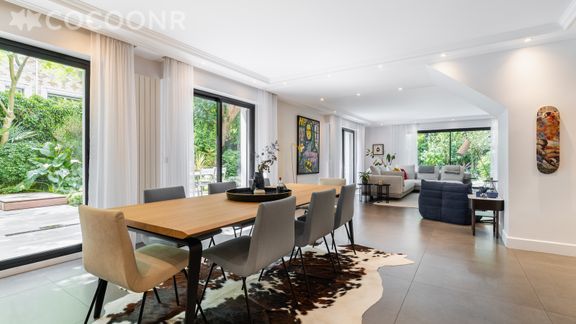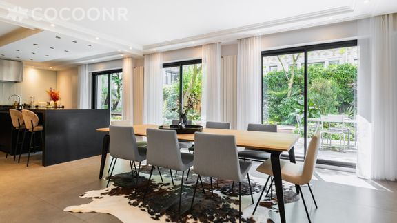 L'agence Cocoonr/Book&Pay vous propose à la location, dans le 17ᵉ arrondissement de Paris, ce bien rare de 210 m² situé en rez-de-chaussée et réparti sur deux niveaux. À seulement 2 km de l’Arc de Triomphe, ce véritable havre de paix peut accueillir jusqu’à 6 voyageurs et offre des prestations haut de gamme, un calme absolu ainsi qu’un jardin privatif de 600 m² sans vis-à-vis.