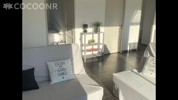 Appartement de 90 m² situé au 1er étage d'une maison avec un beau jardin et une piscine partagés.