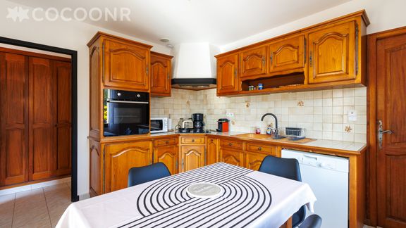 - Une cuisine équipée avec notamment : bouilloire électrique, four, four à micro-ondes, grille-pain, lave-vaisselle, plaques de cuisson...
