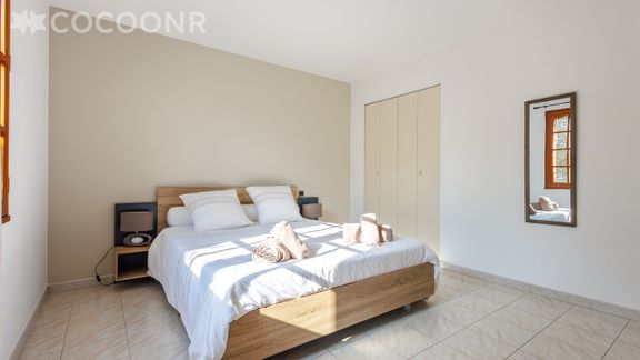 Elle est composée d'une pièce à vivre de 25 m² (avec climatisation), d'une cuisine équipée, de trois chambres ainsi que d'une salle de bain (avec douche et baignoire) et vous pourrez profiter d'un jardin d'environ 300 m². Wifi, draps et serviettes inclus, nous n'attendons plus que vous !