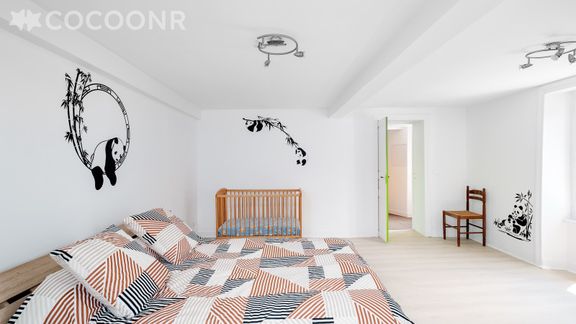- Chambre 3 : un lit double (140x190) avec un canapé lit double