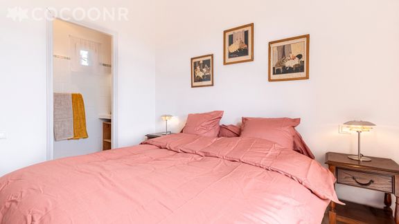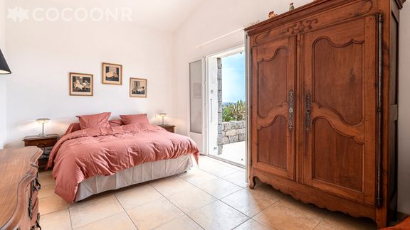 - Une suite parentale avec un lit queen-size (160×200), armoire, une salle d'eau avec douche et une terrasse de 9 m² avec mobilier, vue sur la mer