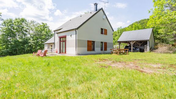- Beau jardin arboré non clos de 2 000 m² vous offrant un magnifique panorama sur les monts du Cantal, aménagé avec une grande table en bois pouvant accueillir 8 convives, bancs, parasol et un barbecue afin de profiter d'un repas ensoleillé.