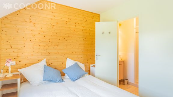 - Chambre 2 avec lit queen-size (160 cm x 200 cm) et sa salle d'eau avec douche.