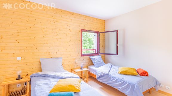 D'une superficie de 110 m² cette maison exposée plein sud ; pouvant accueillir jusqu'à 8 voyageurs se compose de la manière suivante : espace de vie lumineux avec poêle à bois ouvert sur une grande cuisine entièrement équipée, 4 chambres avec chacune sa salle d'eau indépendante, 3 WC séparés ainsi qu'un jardin privatif de 2 000 m² et sa terrasse surplombant la vallée.