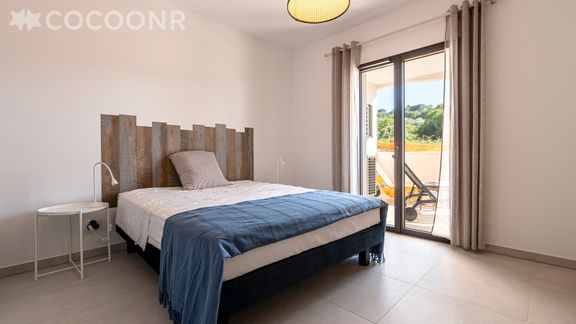 - Chambre 1 climatisée : avec un lit queen-size (160x200), porte-fenêtre avec accès direct sur la terrasse