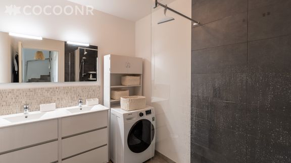 - Une terrasse en bois de 18 m² exposé Nord et un jardin de 30 m² avec mobilier pour profiter des beaux jours.