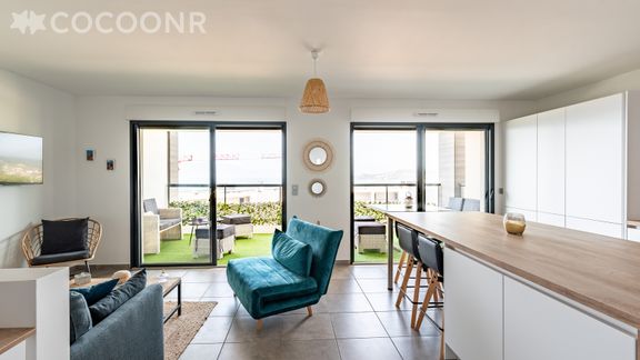 Appartement très moderne, très bien équipé, spacieux avec une belle vue sur la mer et 2 belles terrasses.