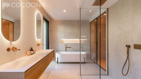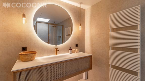 - La suite parentale de 50 m² avec un lit king-size (180x200), une salle de bain (avec une grande douche et une baignoire îlot), deux dressings et un WC indépendant