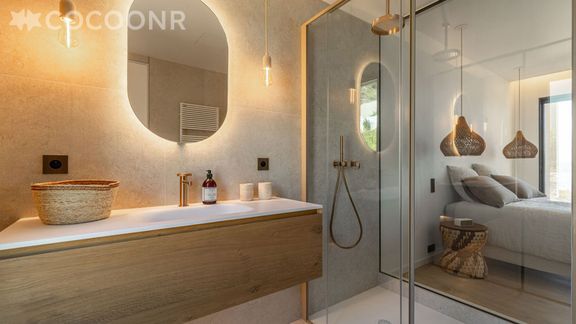 - Deux suites de 25 m² avec chacune un lit queen-size, une salle d'eau (avec douche et WC) et dressing aménagé