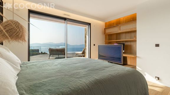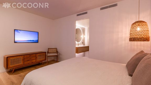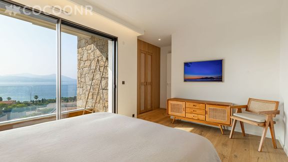 - Une suite de 25 m² vue mer avec un lit queen-size (160x200), une salle de bain (avec douche et WC) et dressing