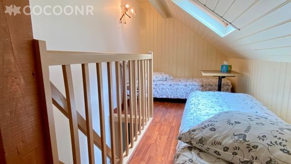 - Un coin nuit avec un lit simple et un lit d'appoint sur la mezzanine