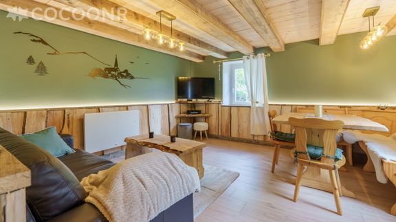 - Une pièce de vie de 17 m² avec TV, canapé et coin repas