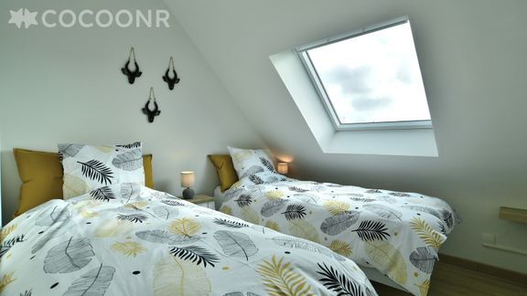 - Chambre 2 : deux lits simples qui peuvent se coller pour former un lit double