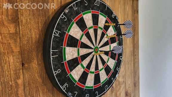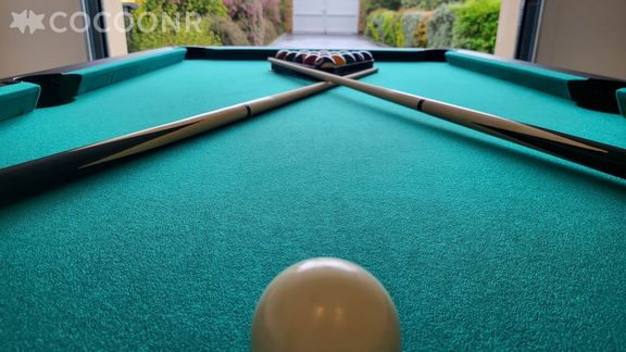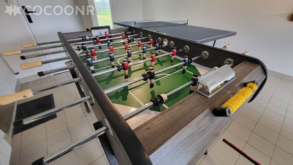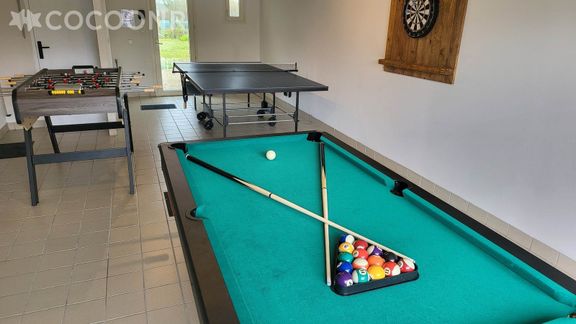 Le garage a été transformé en salle de jeu pour profiter du kicker, table de Ping-Pong, Billard et jeu de fléchettes.