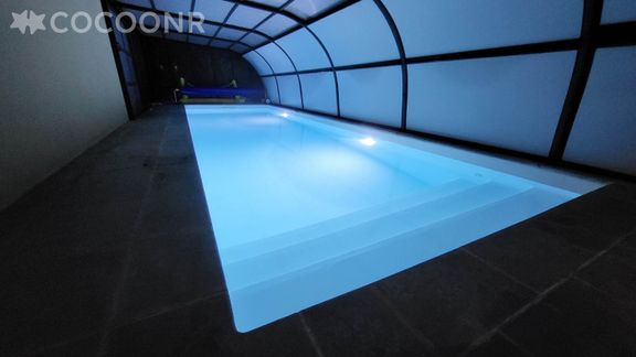 - Une piscine intérieure, privée et chauffée de 10x3.5x1.35m. Elle est ouverte de mi avril à fin septembre.