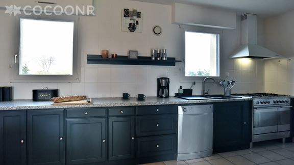 - Une cuisine équipée avec notamment : bouilloire électrique, four, four à micro-ondes, grille-pain, lave-vaisselle, plaques de cuisson...