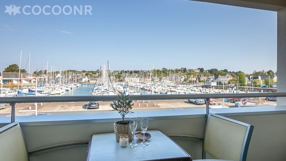 - Balcon de 3,5 m sur 1 m avec avec une vue imprenable sur le port, aménagé avec une table, 2 chaises et 1 tabouret