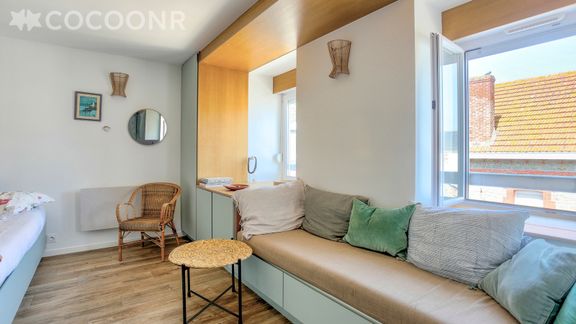 L'Agence Cocoonr/Book&Pay vous propose, à Pléneuf-Val-André, ce charmant studio avec vue mer, à proximité immédiate de la plage, d’une superficie de 22 m² et pouvant accueillir jusqu’à 2 voyageurs. Situé au 2e étage (sans ascenseur), il se compose d’une jolie pièce à vivre de 22 m², d'une cuisine équipée, d'une salle de bain et vous pourrez profiter d’un jardin d’environ 30 m². Les draps et les serviettes sont inclus. Nous n’attendons plus que vous !