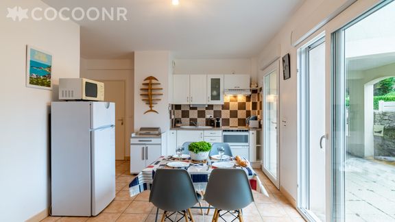 L'appartement se situe au rez-de-chaussée d'une petite résidence, avec un accès complètement indépendant donnant sur la terrasse.