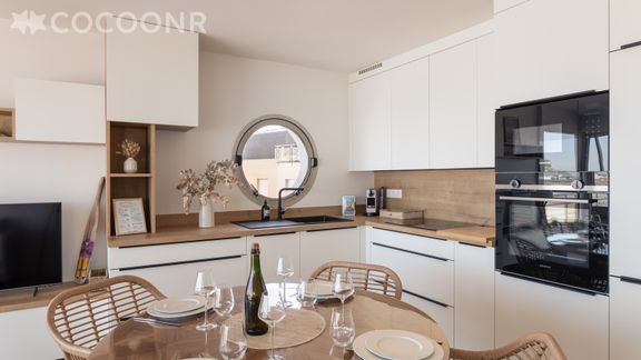 - Une cuisine équipée avec notamment : machine à café Nespresso, bouilloire électrique, four, four à micro-ondes, grille-pain, lave-vaisselle, plaques de cuisson...
