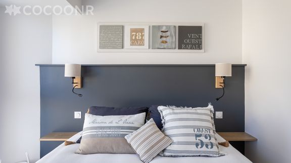 - Une chambre avec 1 lit queen-size (160×200, bonnet de 30cm)