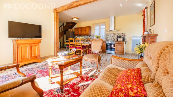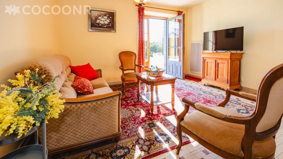 - Une pièce de vie de 31 m² avec TV, canapé et fauteuils.