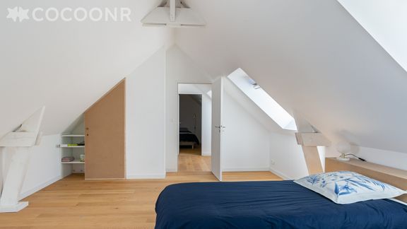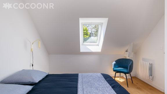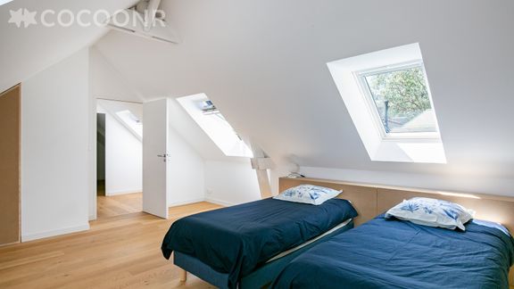 - Chambre 2 : spacieuse et mansardée avec deux lits simples pouvant être rapprochés pour créer un lit King-Size.