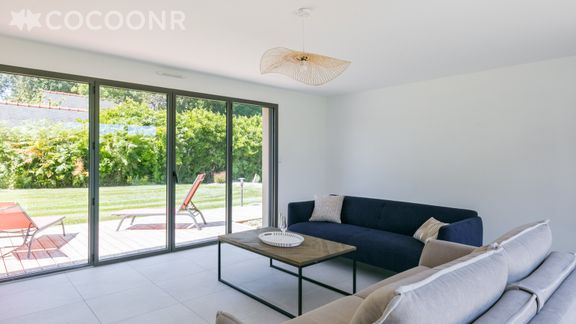 Ce logement moderne dispose d'une belle pièce de vie avec un coin salon, un espace repas, une cuisine séparée entièrement équipée, 2 grandes chambres, 2 salles de douche ainsi qu'un grand jardin arboré exposé sud avec deux terrasses pour profiter d'un bon repas en extérieur !